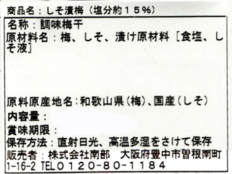 しそ梅(壜入り)123g 南高梅